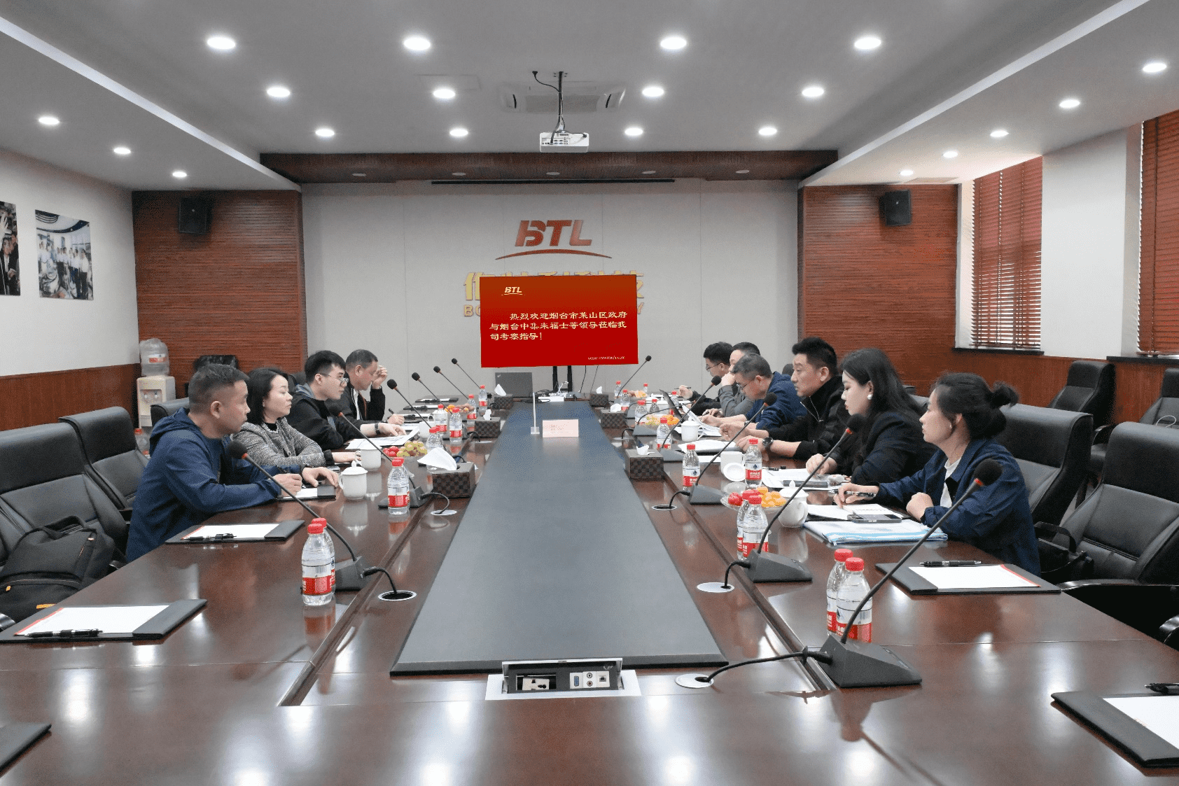 On April 8, 2025, a delegation from the Laishan District Government of Yantai City and CIMC Raffles visited Zhejiang Bethel Technology Co., Ltd. for inspection and guidance. Chen Qingsong, Vice General Manager, and Jin Kadi, Chief Information Officer of Zhejiang Bethel Technology Co., Ltd., accompanied the delegation throughout the tour of the Digital Intelligence Exhibition Hall and Smart Workshop, and participated in the discussion and exchange session.